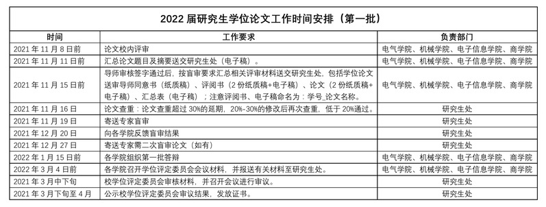 根据《上海电机学院硕士学位授予实施细则》(沪电机院科研[2018]256号)和《上海电机学院硕士学位论文管理办法》(沪电机院研[2018]260号)的规定和要求,现将2022年第一批研究生论文及学位授予相关工作安排通知如下: