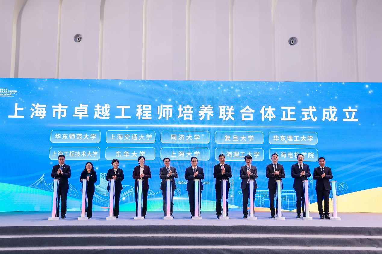 12月14日,上海市卓越工程师培养联合体成立暨同济·临港卓越工程师创新学院揭牌仪式在临港中心滴水湖厅隆重举行。上海市委常委、临港新片区党工委书记、管委会主任陈金山,临港新片区党工委委员、管委会常务副主任杨正伟,上海市教卫工作党委副书记、上海市教委主任周亚明,上海电机学院与同济大学、复旦大学、上海交通大学、华东师范大学、华东理工大学、东华大学、上海大学、上海理工大学、上海工程技术大学等10 所高校的领导共同出席揭牌和成立仪式。党委副书记朱洪春代表我校参加上海市卓越工程师培养联合体成立仪式。