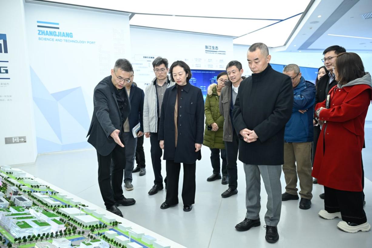 龚思怡一行在展厅系统了解了张江集团发展历程及张江科技港“一港三园”总体布局。随后参观了张江科技港摩尔园、奇点园,实地踏勘了奇点园1号楼,详细了解了张江集团的品牌历程和张江科技港的发展情况,对园区厂房与卓越工程师学院建设项目的契合度进行了深入考察。